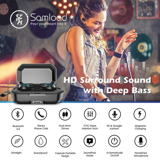 [Bluetooth 5.0 & IP7 Waterproof]The NEWEST TWS Earbuds Headset Dual Mic with Charger