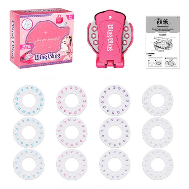 Diamond Gem Stapler - Glam Girl Styling Tool Deluxe Set brings your life! It's a fabulous hair styling tool to glam up your hair with Gems and any fashion accessories. You can apply to hairs or any material's surfaces & add shimmery gems to your items in seconds! It's easy to apply on your hair or fashion accessories, then easily comb gems out!