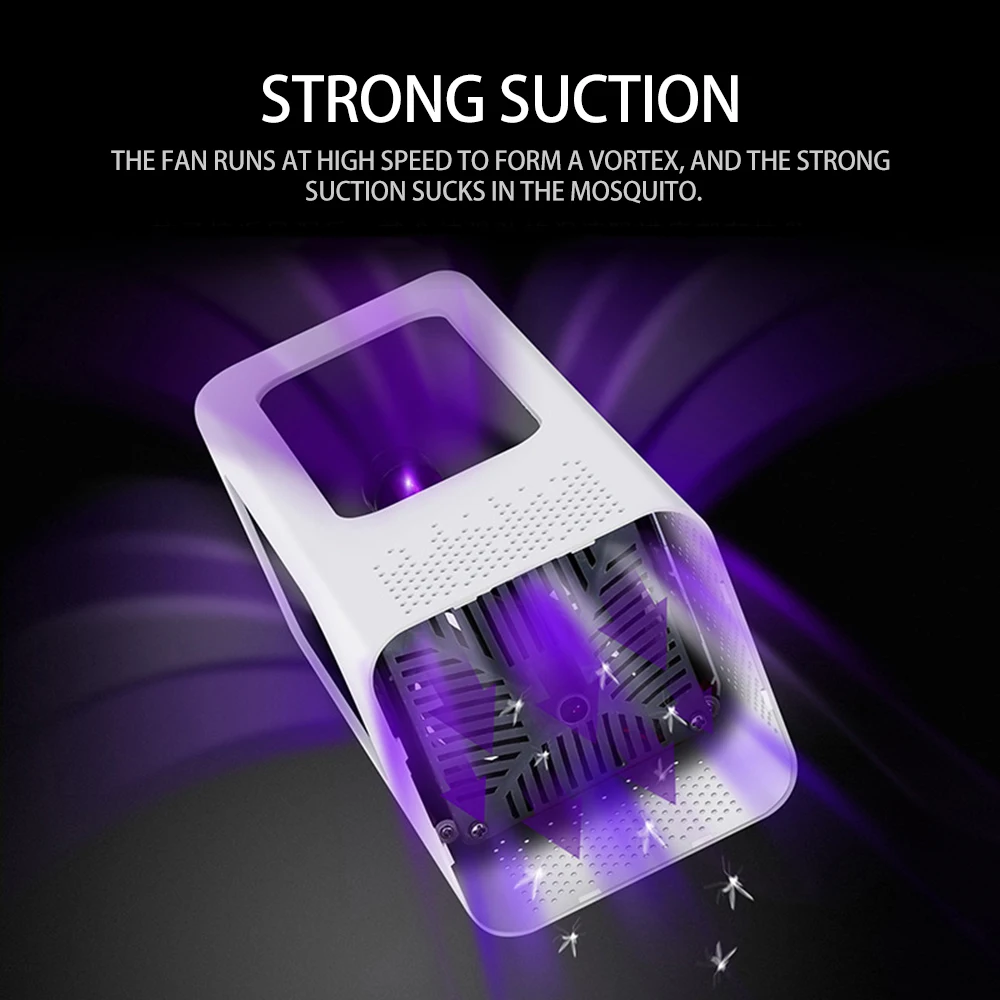 EFFECTIVE MOSQUITO KILLING: 360 degree wrap-around UV light can attract mosquitoes in a wider range, there is a strong swirling flow in the middle and a closed mosquito tray at the bottom to avoid escape.